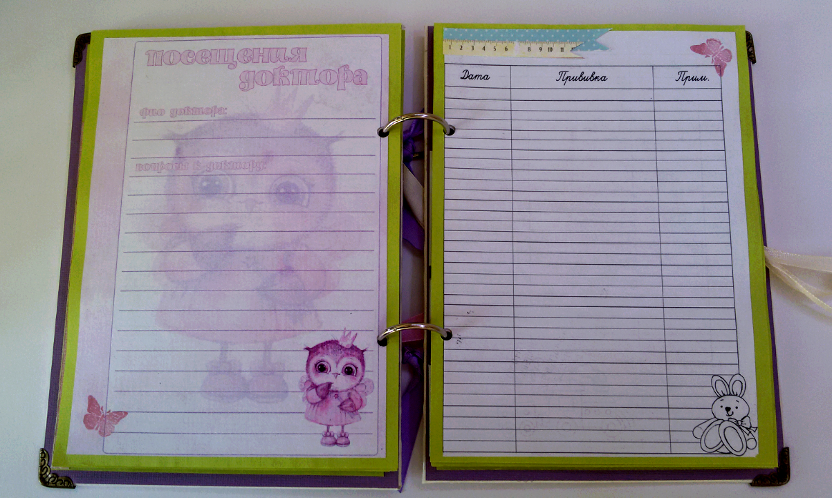 На последней страничке место для фото малышки и раскладушка на 5 фото о первом дне рождении.